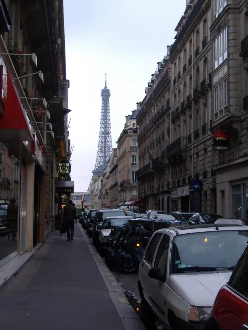 The breathtaking first sight of the Eiffel Tower in Paris after turning a street corner